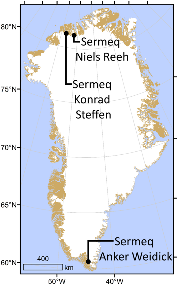 Zum ersten Mal in langer Zeit erhielten die grönländischen Karten Ortsnamen, die keinen grönländischen Ursprung haben. Drei Gletscher wurden nach drei verstorbenen Glaziologen benannt, die allesamt aussergewöhnliche Beiträge zur grönländischen Gesellschaft und Wissenschaft leisteten – Niels Reeh, Anker Weidick und Konrad Steffen. Letzterer starb bei einem tragischen Unfall, während er auf dem Eisschild bei Ilulissat im Jahr 2020 Feldforschung betrieb.