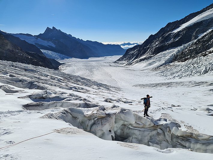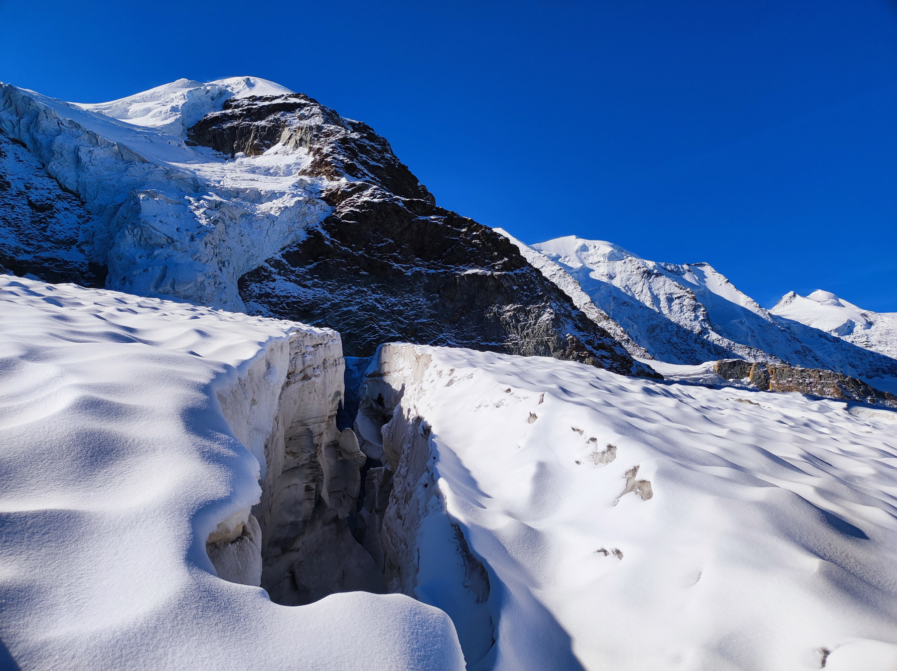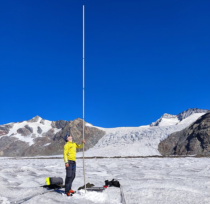 Das Einschneien erfolgte im Winter 2021/22 für die meisten Gletscher Anfang November, was ungefähr der Norm entspricht. Allerdings verschwand die Schneedecke auf allen Höhenstufen rund einen Monat früher als üblich. Die über 80-jährige Messreihe auf dem Weissfluhjoch (GR, 2540 m) zeigte das zweitfrüheste je gemessene Ausaperungsdatum (6. Juni). Die Sommermonate waren rekordmässig heiss, sonnig und wolkenlos. So sank z.B. an der MeteoSchweiz-Station Jungfraujoch (VS, 3571 m) zwischen Juni und August an 41 Prozent aller Tage die Temperatur nie unter den Gefrierpunkt (durchschnittlich sind es 25 Prozent). Der Sommer war auch extrem trocken. Bis Mitte September gab es im Hochgebirge nur wenige Zentimeter Neuschnee.