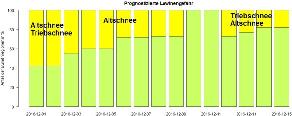 „Alle Jahre wieder...“ ist man fast schon geneigt zu sagen. Wie schon in den beiden Vorjahren, so war auch diesmal die erste Dezemberhälfte in den Bergen meist sonnig, mild und trocken. Zum dritten Mal in Folge (nach Dez. 2014 und Dez. 2015) waren damit Mitte Dezember mittlere und tiefe Lagen meist schneefrei. Abgesehen von Triebschneeansammlungen, welche mit zeitweise starkem Nordwind gebildet wurden, war die Lawinensituation mehrheitlich günstig.