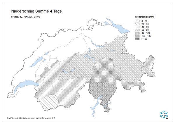 Dienstag, 27.06. bis Freitag, 30.06.: Viel Niederschlag, Lawinengefahr im Hochgebirge