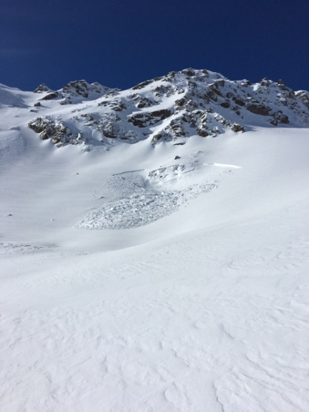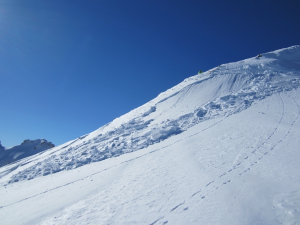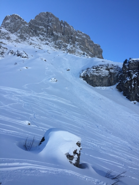 Am Dienstag, 21.02. fiel im Norden gebietsweise bis auf 2400 m Regen. Dadurch wurden einige feuchte Rutsche und kleine Lawinen ausgelöst (vgl. Abbildung 10). Grössere Lawinen wurden nicht beobachtet, dies sicher auch, weil dafür der Schnee fehlte.