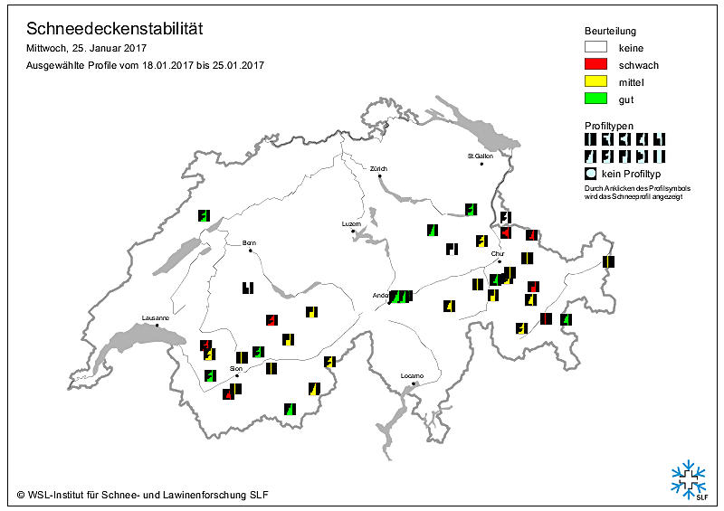 Am Samstag, 21. Januar ereignete sich am Forstberg, Oberiberg, SZ (2100 m, N) ein tödlicher Lawinenunfall (siehe auch Unfalltabelle). Zudem wurden dem SLF folgende Lawinenauslösungen mit erfassten Personen gemeldet: