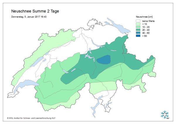 Bis zum Redaktionsschluss am Donnerstagnachmittag fielen die in Abbildung 7 dargestellten Neuschneemengen.
