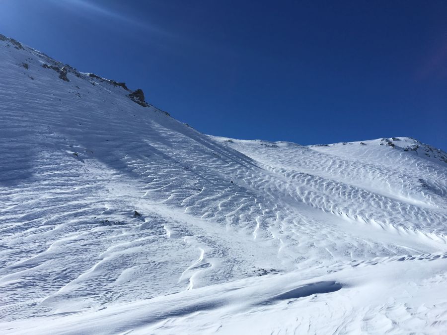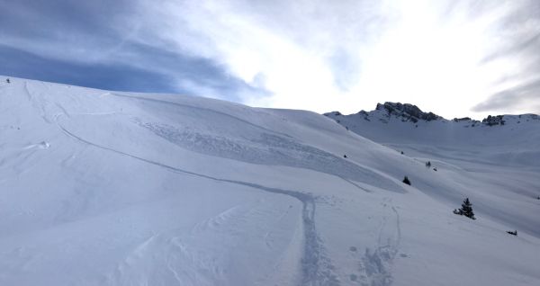 In den Gebieten mit weniger Neuschnee (vgl. Abbildung 1) trugen die starken bis stürmischen Winde aus West bis Süd und die teilweise noch störanfälligen Schwachschichten im oberen Teil der Schneedecke massgeblich zur Gefährdung bei. Zu Beginn und zum Ende der Berichtsperiode wurde daher auch in diesen Gebieten verbreitet vor erheblicher Lawinengefahr gewarnt. Im frischen Triebschnee wurden denn auch einige Lawinen durch Personen ausgelöst. Sie waren eher klein (vgl. Abbildung 3).