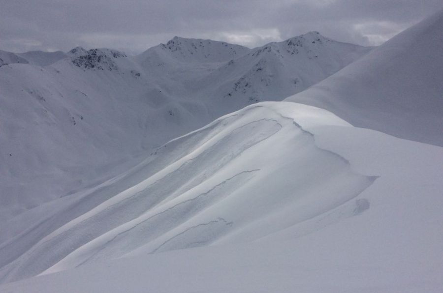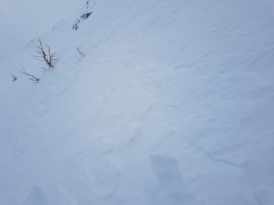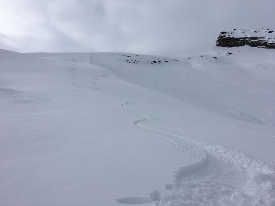 Vor allem in den Hauptniederschlagsgebieten des Südens und Westens, wo in Summe bis zu 60 cm Neuschnee fielen (vgl. Abbildung 1) hätte der Neuschnee alleine schon für eine erhebliche Lawinengefahr ausgereicht, in den übrigen Gebieten kaum. Dass während dem Schneefall oft starker Wind blies verschärfte die Situation zusätzlich. Im Westen und Süden wurden einzelne grosse trockene Lawinen beobachtet (vgl. Abbildung 2).