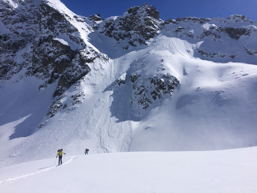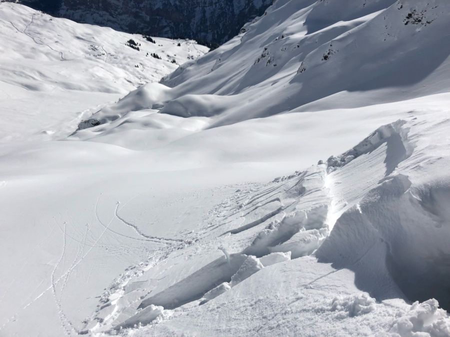 Mit milden Temperaturen, Föhn und diffuser Strahlung wurde die Schneedecke stark erwärmt. Nassschneelawinen wurden vor allem in tiefen Lagen und an Südhängen mittlerer Lagen beobachtet. Zunehmend gingen aber auch Gleitschneelawinen ab, an Südhängen bis gegen 2500 m. Da in diesen Höhenlagen noch sehr viel Schnee lag, erreichten die Gleitschneelawinen teils grosse Ausmasse (vgl. Abbildung 6).