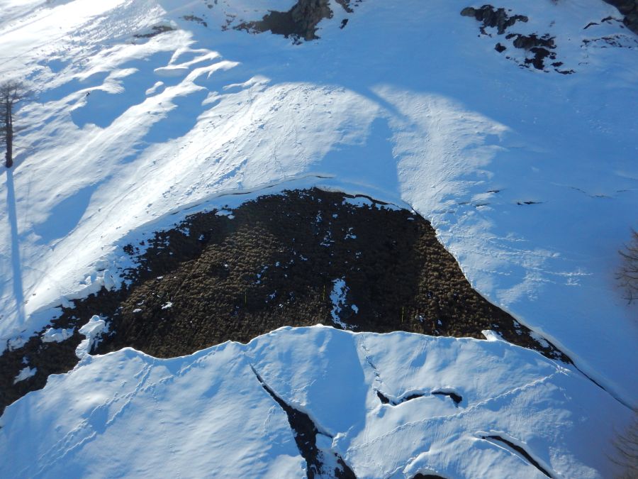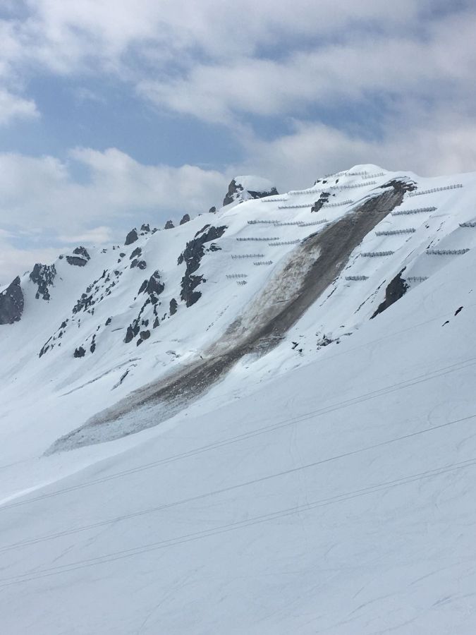Weiterhin stellten Gleitschneelawinen eine Gefährdung dar. Zwar war die Aktivität aufgrund der eher tiefen Temperaturen nicht hoch, aber beobachtete Lawinen erreichten aufgrund der ausserordentlichen Schneehöhen grosse Ausmasse und hatten somit nach wie vor ein hohes Schadenspotential (vgl. Abbildung in der Bildstrecke oben).