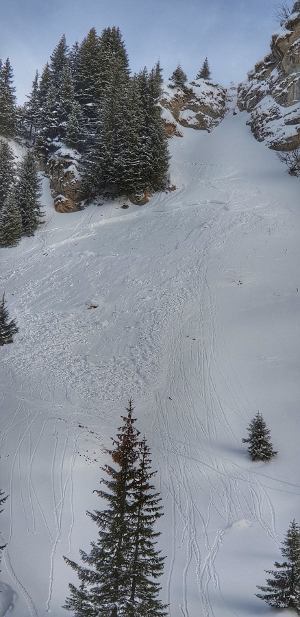 Anders präsentierte sich die Situation in den schneereichen Regionen am zentralen und östlichen Alpennordhang über Nordbünden bis in die Silvretta und nach Samnaun. Hier hatten sich die mächtigen Neu- und Triebschneeschichten der Vorwoche bestens verfestigt (Abbildung 5). Dies führte zu einem sehr günstigen Schneedeckenaufbau bei dem Lawinenauslösungen zunehmend nur noch mit sehr grosser Zusatzbelastung, im extrem steilen Gelände oder an schneearmen Stellen möglich waren. Gegen Ende dieser Berichtswoche ging die Gefahr vor allem noch von Gleitschneelawinen aus. Tourengeher und Variantenfahrer fanden in diesen Gebieten häufig ideale Bedingungen vor.