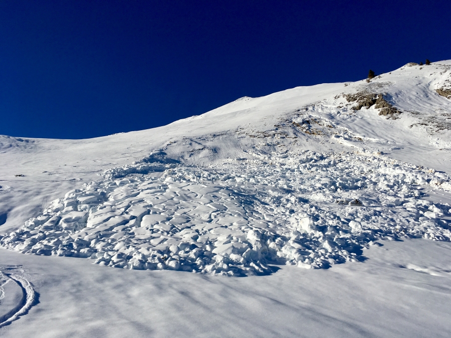 Am Roc d’Orzival löste eine Person auf rund 2700 m an einem Nordosthang eine grosse Schneebrettlawine aus und wurde 200 m mitgerissen, wurde aber nicht verschüttet und blieb unverletzt. Auch diese Lawine brach bis in bodennahe Altschneeschichten durch.