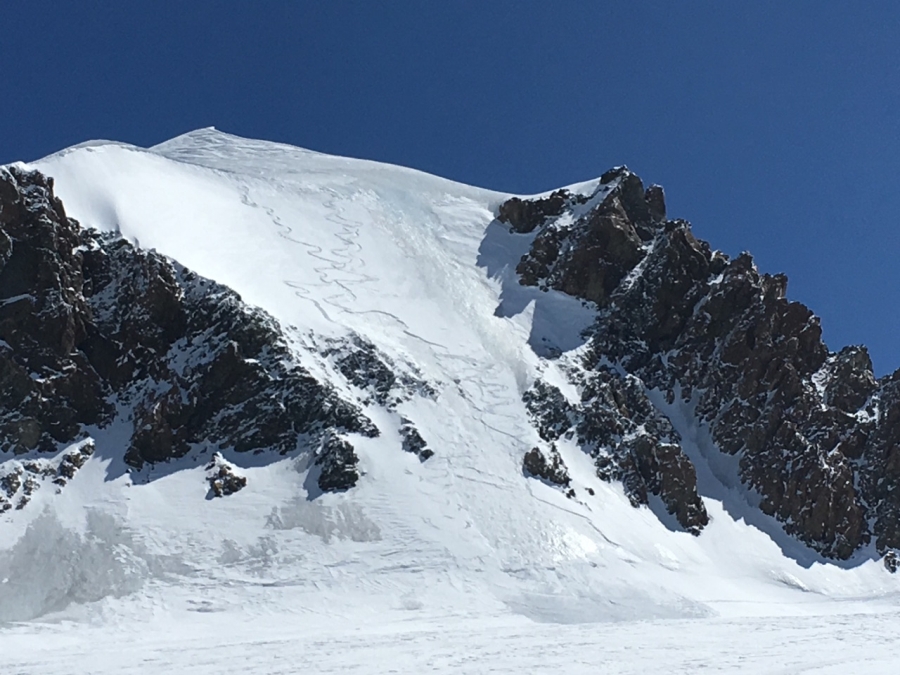 Am Dienstag, 30.04. löste eine Skitourengruppe am Alplistock (2894 m, Guttannen, BE) an einem steilen Südosthang eine dünne, aber grossflächige Schneebrettlawine aus (Abbildung 6). Der Aufstieg erfolgte mit Entlastungsabständen. Sechs Personen wurden teilverschüttet. Es wurde niemand verletzt.