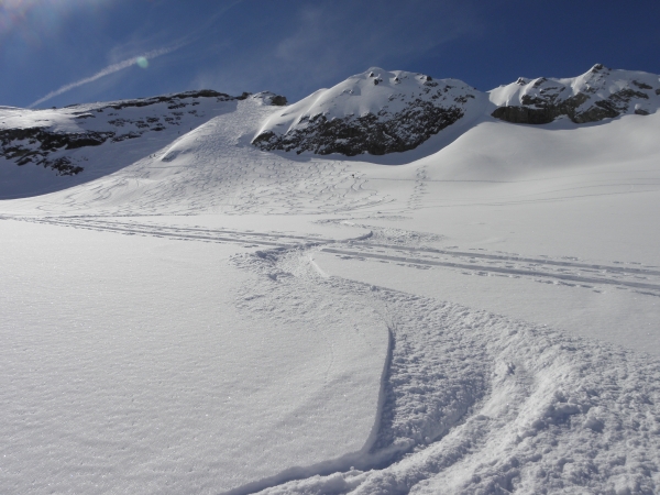 An steilen, windgeschützten Nordhängen lag teils noch Pulverschnee (Abbildung 1). In Kammlagen und im Hochgebirge bildeten sich mit dem Südwind lokal kleine Triebschneeansammlungen. Sonst war die Schneedecke verbreitet günstig und stabil. Die Gefahr für trockene Lawinen war überall gering (Stufe 1).