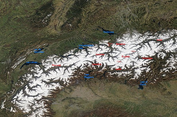 Vor den Niederschlägen vom Mittwoch, 03.04. und Donnerstag, 04.04. lagen die Schneegrenzen an Nordhängen in den nördlichen Schweizer Alpen sowie im Jura bei 1000 bis 1400 m, in den südlichen Schweizer Alpen bei 1600 bis 1800 m. An Südhängen lagen die Schneegrenzen rund 500 m höher (Abbildung 4). Die Durchfeuchtung der Altschneedecke war an steilen Südhängen bis auf rund 3000 m, an Ost- und Westhängen bis auf rund 2300 m fortgeschritten. An Nordhängen war die Altschneedecke noch meist trocken. In Abbildung 5 sind die Schneehöhen auf 2000 m am Donnerstagmorgen, 04.04. dargestellt. Sie lagen besonders in den zentralen und östlichen Gebieten der Schweizer Alpen deutlich über dem Durchschnitt.