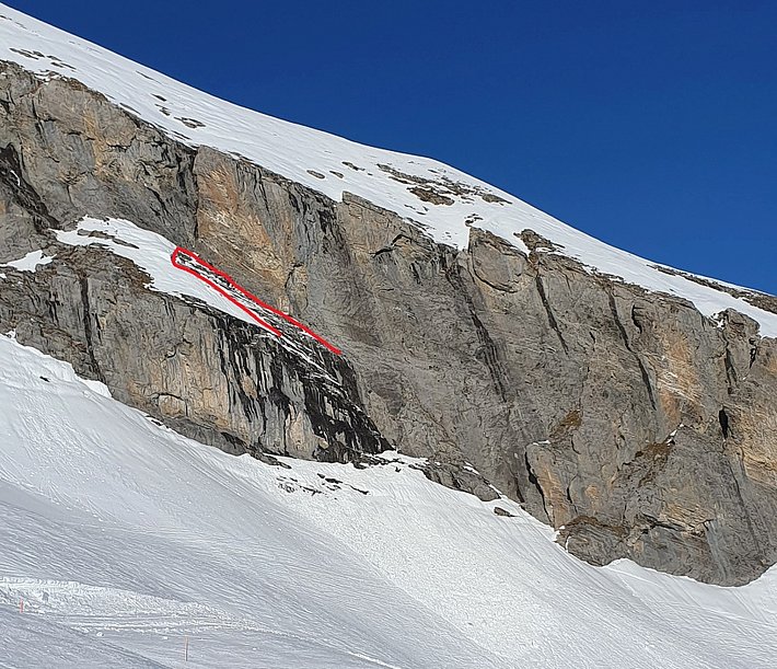 In allen Gebieten waren weiterhin Gleitschneelawinen möglich. Gleitschneerisse (vgl. Abb. 7) waren viele vorhanden, Gleitschneelawinen jedoch gingen nur wenige ab. Vor allem im Westen und Süden konnten diese vereinzelt gross werden.