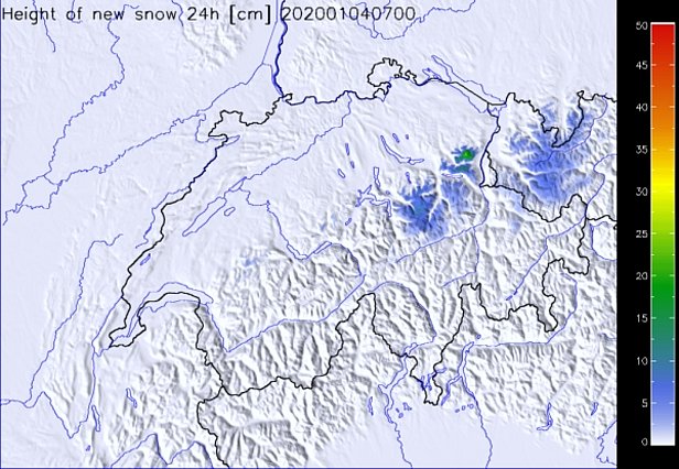 Am Freitag war es mehrheitlich stark bewölkt. Besonders in der Höhe frischte der Wind aus westlichen Richtungen deutlich auf und blies zeitweise stark. Am Samstag war es dann mit Nordwind am Alpensüdhang und im Oberengadin meist, im Westen teilweise sonnig. Am zentralen und östlichen Alpennordhang sowie in den übrigen Gebieten Graubündens war es meist stark bewölkt und es fiel Niederschlag (vgl. Abbildung 1), mit einer Schneefallgrenze zwischen 900 und 1200 m (vgl. Abbildung 2).