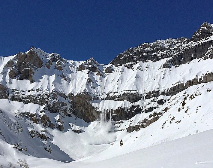 Mit zwei recht sonnigen und sehr milden Tagen nahm die Gefahr von trockenen Lawinen allmählich ab. Oberhalb von rund 2400 m wurde in den Gebieten mit viel Neuschnee noch vor erheblicher Lawinengefahr (Stufe 3) gewarnt. Unterhalb von rund 2400 m stabilisierte sich die feuchte Schneedecke durch die nächtliche Abstrahlung. Die Gefahr von nassen Lawinen unterlag einem Tagesgang. Mit der tageszeitlichen Erwärmung und der Sonneneinstrahlung gingen im Tagesverlauf spontane Lawinen ab, vereinzelt auch grosse (vgl. Abbildung 9).