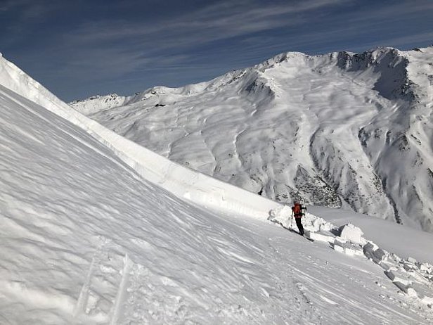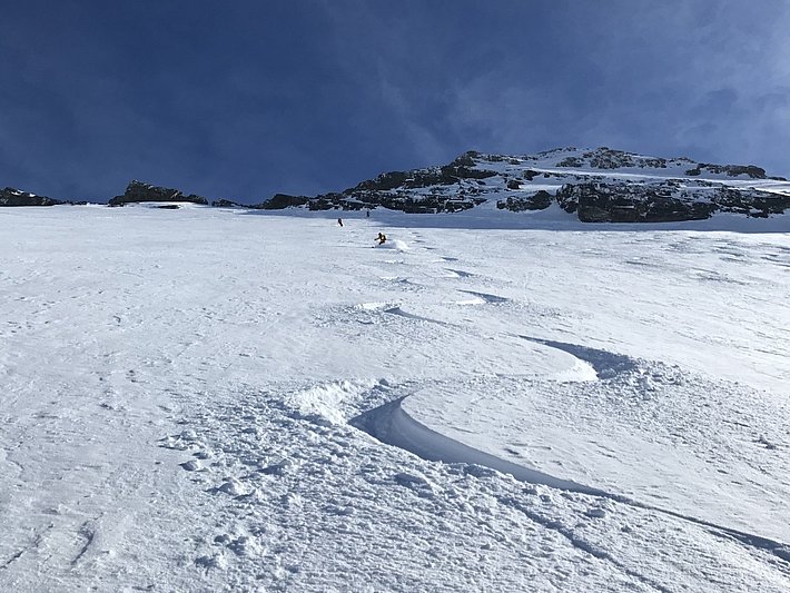Bei diesem ruhigen Wetter nahm die Lawinengefahr ab. Die Verbindung des Triebschnees zur darunterliegenden Kruste war günstig und der Triebschnee setzte sich rasch. Es wurden kaum mehr Lawinenauslösungen im Triebschnee beobachtet. Im Nachhinein beurteilt hätte die Lawinengefahr schon am Freitag als mässig (Stufe 2) beurteilt werden können.