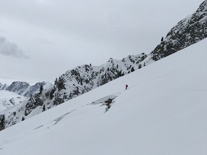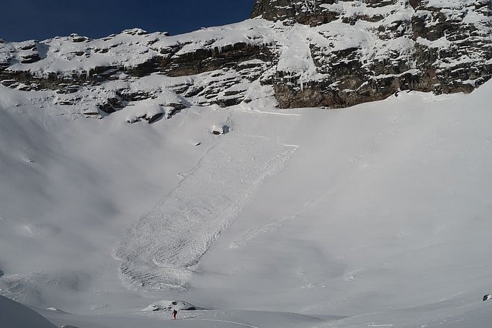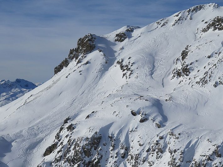 Auslösungen durch Personen und wenige spontane Lawinen konnten am Sonntag vor allem in Graubünden erneut dem Altschneeproblem zugeordnet werden. Zwei diese Lawinen wurden am Sonntag am Chummer Schwarzhorn (Davos, GR) ausgelöst (vgl. Abbildung 6, 7 und 8).