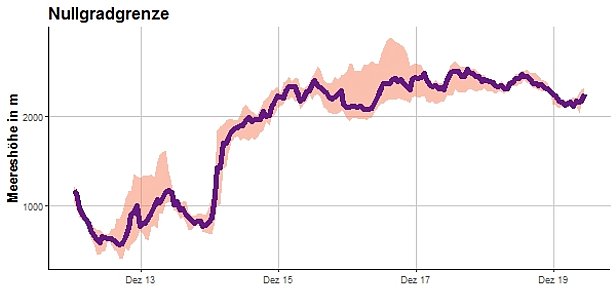 Zudem fiel vor allem im Westen und Süden viel Schnee (vgl. Abbildung 4, 10). Die Temperaturen waren vor allem im Norden für die Jahreszeit sehr mild. Die Nullgradgrenze kletterte von unter 1000 m zum Anfang der Wochenberichtsperiode auf über 2000 m ab Sonntag, 15.12.
