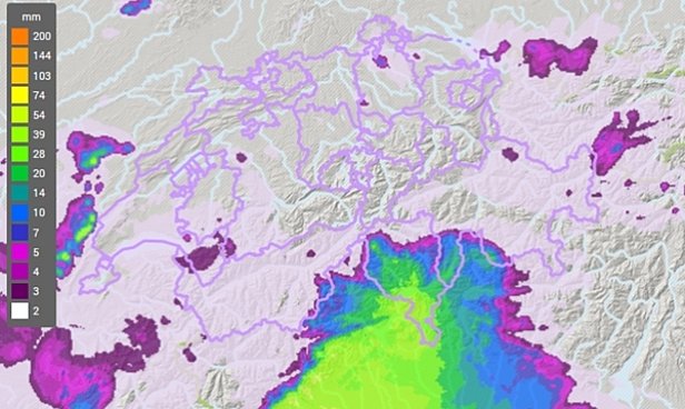 Die Abfolge von warmem, zum Teil wolkigem Tag am Samstag und feucht-milder Nacht ohne Abstrahlung auf Sonntag und gebietsweisem Regen bis am Dienstag befeuerte die weitere Durchfeuchtung der Schneedecke an Nordhängen bis in Höhenlagen von rund 2800 m. Ab dem Nachmittag des Sonntags mass das Lysimeter auf dem SLF-Versuchsfeld Weissfluhjoch (2544 m, Davos, GR) Schmelzwasserabfluss aus der Schneedecke. Dieses Einsetzen des Abflusses korreliert meist mit einer erhöhten Nassschneelawinenaktivität.