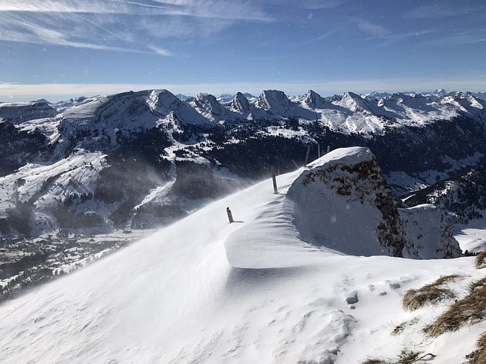 Die Lawinengefahr ging in den meisten Gebieten bis am Montag auf Stufe 1 (gering) zurück. Zwar wurde vor allem in der Höhe mit dem oft starken, teils sogar stürmischen West- bis Nordwestwind immer wieder Schnee verfrachtet. Die Triebschneeansammlungen waren aber klein und meist auch nicht einfach auslösbar.