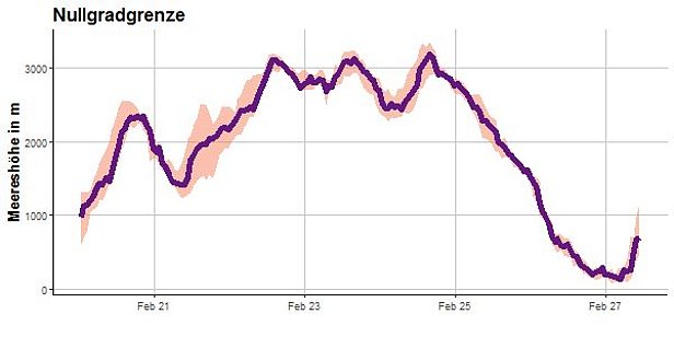 Dienstag, 25. bis Donnerstag 27.02.: Schnee im Norden teils bis in tiefe Lagen, Anstieg der Lawinengefahr ¶