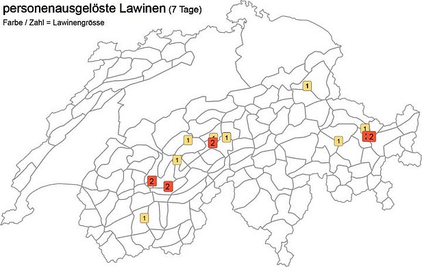 Am 30.01. wurden zahlreiche Lawinen durch Personen ausgelöst. Bis Redaktionsschluss wurden drei Lawinen mit je einer erfassten Person gemeldet (Verbier/VS, Schwarzsee/FR, Davos/GR). Bei diesen drei Lawinenauslösungen wurde niemand verletzt.