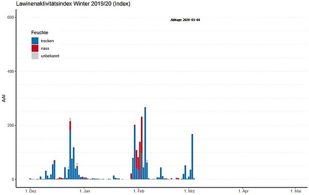 Am Samstag, 29.02. blieb die Lawinengefahr erheblich. Mit dem Föhn entstanden frische Triebschneeansammlungen. Diese waren aber wenig auslösefreudig oder sie stabilisierten sich sehr schnell und für den Sonntag, 01.03. wurde deshalb verbreitet nur noch vor mässiger Lawinengefahr gewarnt. Ganz anders jedoch die Triebschneeansammlungen, die in der Nacht auf Sonntag, 01.03. mit Neuschnee und Westwind entstanden. Diese waren teilweise sehr störanfällig und es wurden zahlreiche Lawinen von Personen ausgelöst. Lawinen waren aufgrund der eher geringen Neuschneemenge jedoch meist klein. Die Störanfälligkeit dieser Triebschneeansammlungen war der Grund, dass im Morgenbulletin am Sonntagmorgen, die Gefahrenstufe 3 gegen Osten ausgebreitet wurde. Auch diese Triebschneeansammlungen stabilisierten sich in der Folge rasch.