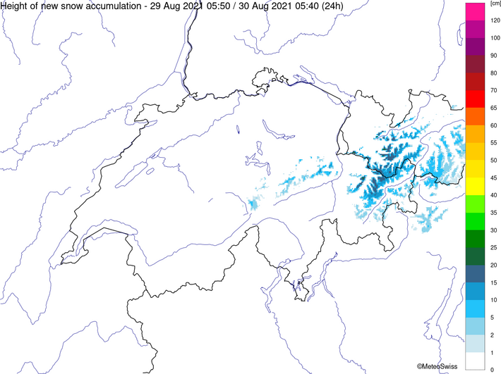 - sonst 5 bis 20 cm, am Alpensüdhang trocken