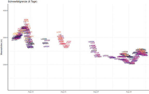 Oberhalb von 3500 m fielen in Summe von Montagnachmittag bis Freitagnachmittag (vgl. Abb. 1.2):