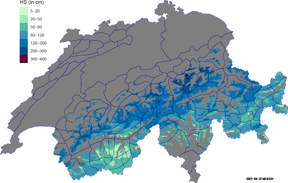Wie für diese Jahreszeit typisch, waren die Unterschiede in der Schneehöhe zwischen mittleren und hohen Lagen markant (Abb. 8):