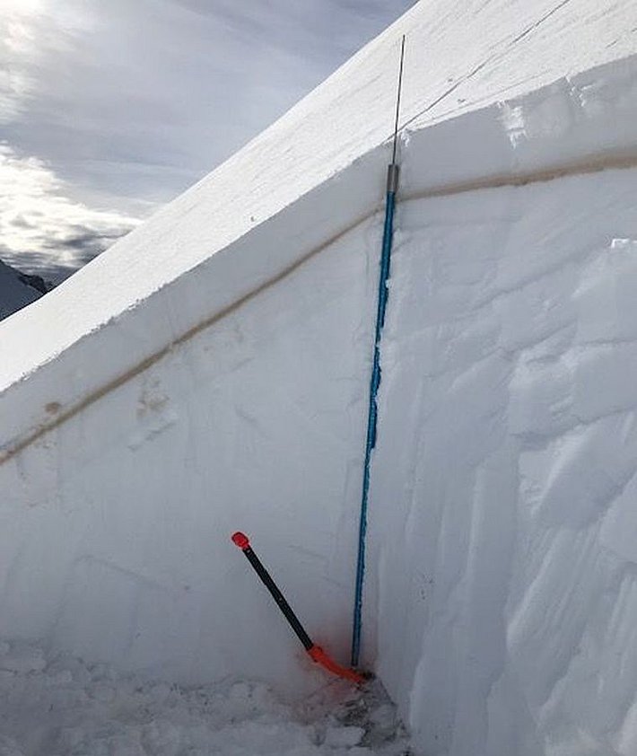 In der zweiten Hälfte dieser Berichtsperiode brachen Stabilitätstests zunehmend in einer dünnen Schwachschicht direkt oberhalb einer Schmelzharschkruste. Dabei handelte es sich meist um die Kruste mit dem Saharastaub. Es bleibt weiter zu verfolgen, ob sich damit ein oberflächennahes Altschneeproblem abzeichnet.