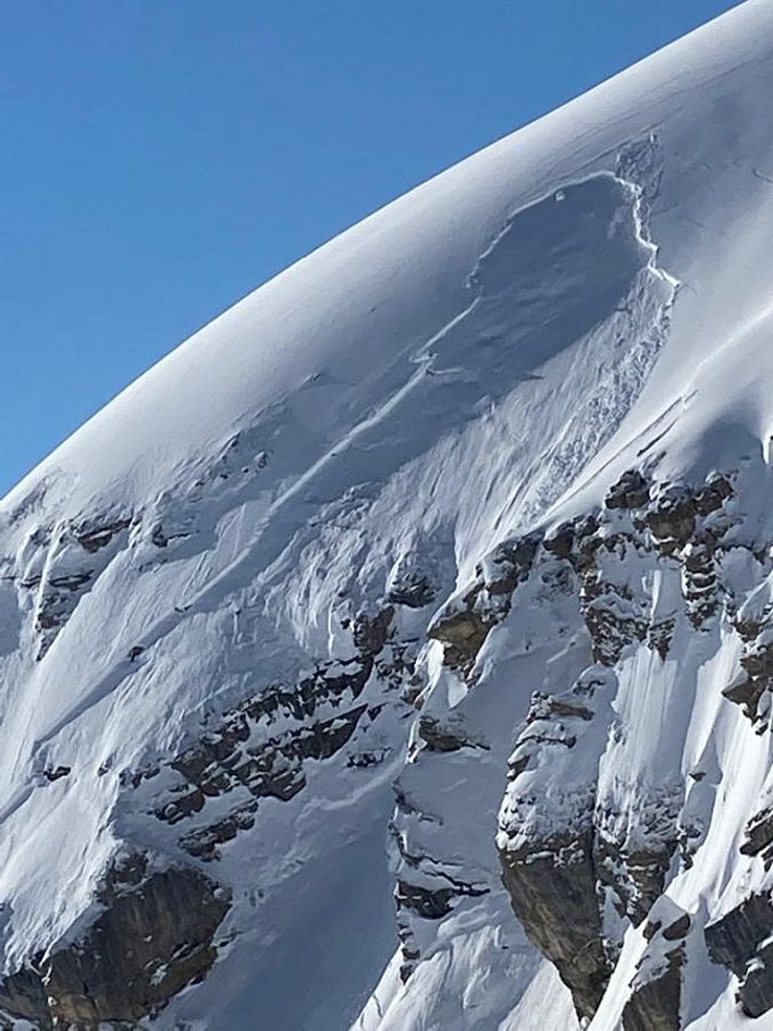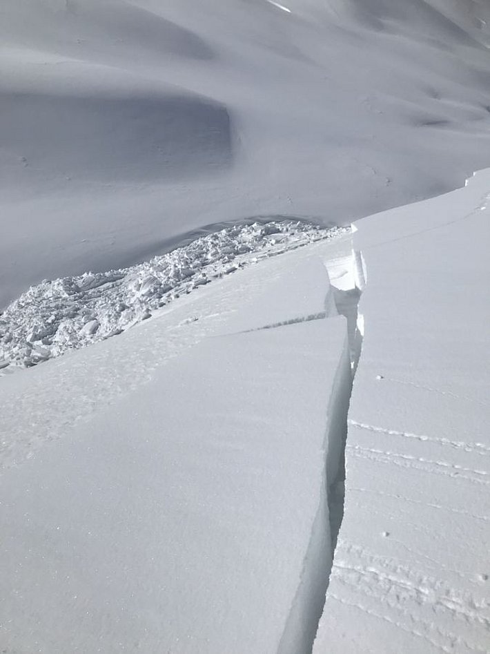 Im oberen Anrissbereich lag zudem Triebschnee, wie in der Nahaufnahme gut ersichtlich ist.
