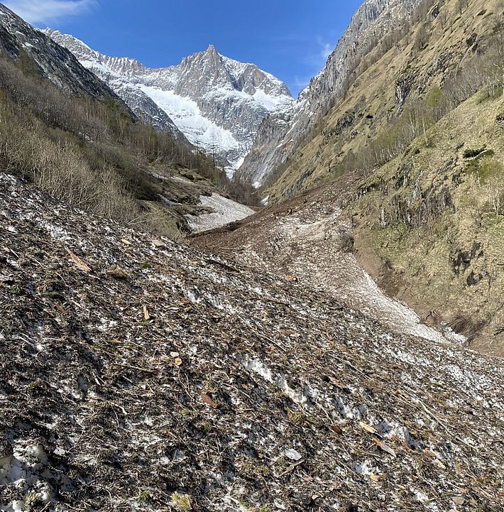 Bereits gegen Ende der vergangenen Berichtsperiode hatte die Aktivität von nassen Lawinen deutlich zugenommen. Der Donnerstag, 29.04. stellte sich im Nachhinein als erster Tag heraus, an dem wieder vermehrt nasse Lawinen an Nordhängen abgingen. Am Freitag, 30.04. nahm die Aktivität dann nochmals deutlich zu. Es gingen sehr viele Lockerschneelawinen ab. Diese rissen in der Sturzbahn zum Teil den Altschnee mit. Exemplarisch dafür meldete ein SLF Beobachter, es sein im Dischmatal (Davos, GR) «fast alles unten» und meldete überschlagsmässig rund 100 Lawinenabgänge in seinem Sichtfeld.