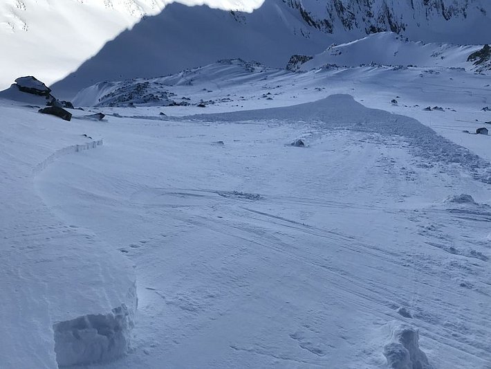 Die mitgerissene, ganz verschüttete Person konnte mit sehr viel Glück lebend aus der Lawine geborgen werden.