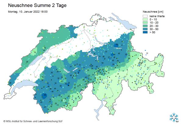 Während sich Schneesportler im Norden über Neuschnee freuen durften, blieb es im Süden meist trocken und schneearm. Die Lawinengefahr ging vor allem vom Neu- und Triebschnee aus. Auf der Regenkruste von Ende Dezember hatte sich zudem eine Schwachschicht gebildet, die für einige Lawinenauslösungen verantwortlich war.