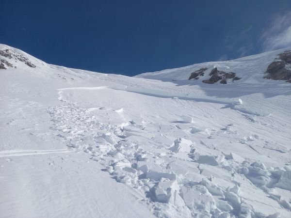 Bereits ab Donnerstag, 20. Januar und bis in die Nacht auf Sonntag verfrachtete der starke Nordwind den Neuschnee. Zudem wurde in allen Gebieten auch der lockere Altschnee, der besonders an Schattenhängen vorhanden war, verfrachtet (Abbildung 3). Der frische Triebschnee lag an windgeschützten West-, Nord- und Osthängen auf einer kantig aufgebauten Schicht oder, in winderodierten Kammlagen, teils auch direkt auf der Regenkruste von Ende Dezember. Die Triebschneeansammlungen waren stellenweise leicht auslösbar (Abbildung 4 und Bildstrecke). Die Lawinen wurden innerhalb des Neu- und Triebschnees oder am Übergang zur Altschneeoberfläche ausgelöst und waren klein bis mittelgross (Abbildung 9). Die Lawinengefahr war verbreitet «mässig» (Stufe 2), Triebschnee war die Hauptgefahr.