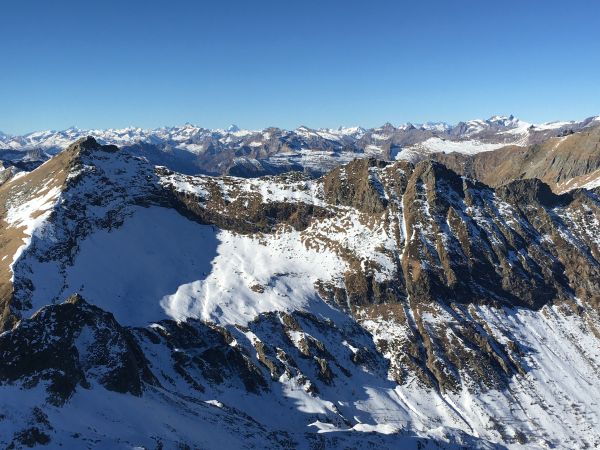 Ab Sonntag war wieder «oben blau, unten grau» angesagt, mit milden Temperaturen in den Bergen und meist sehr guter Fernsicht (Abbildung 8 und Bildstrecke). Der Wind wehte meist schwach bis mässig aus nördlichen Richtungen.