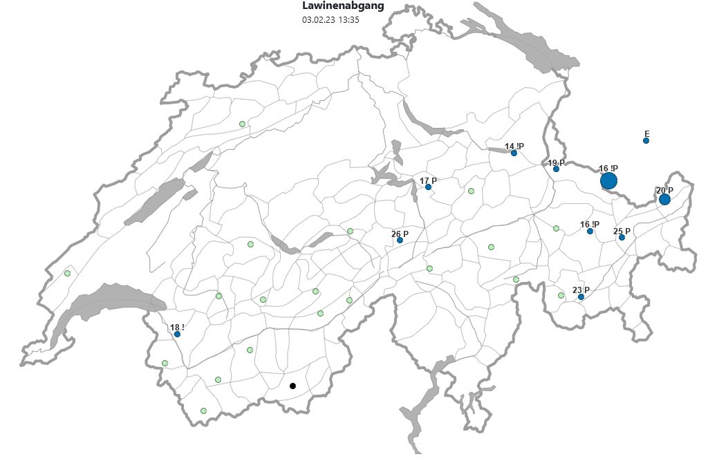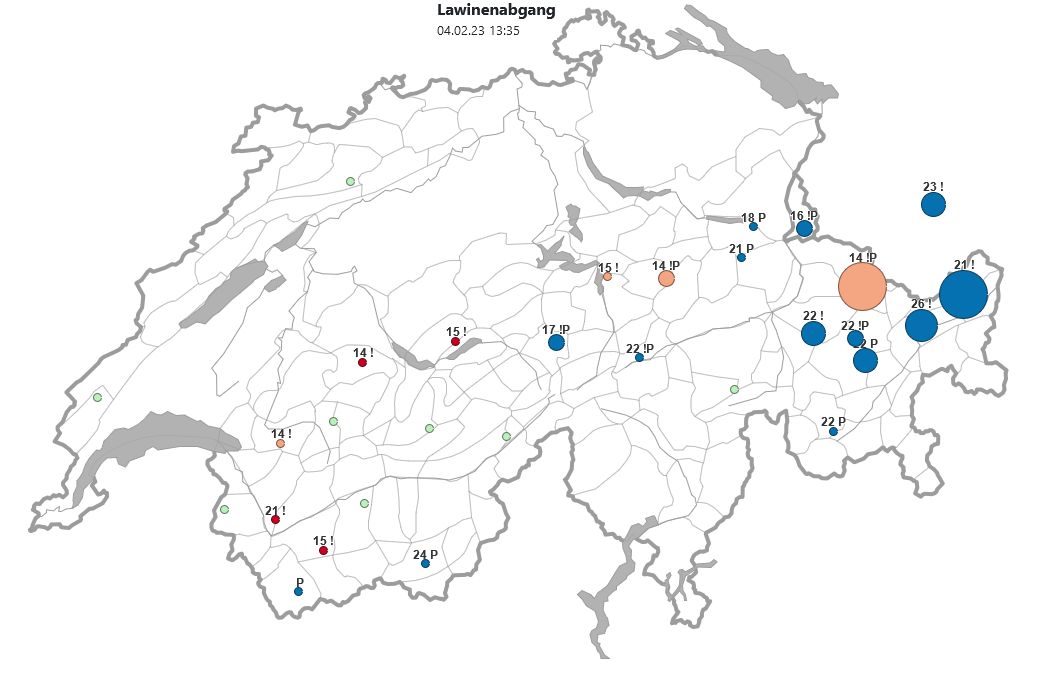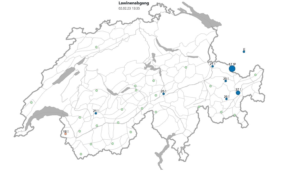 Die gesamte, gemeldete Lawinenaktivität über die hier beschriebenen Tage ist der Abbildung 8 dargestellt.