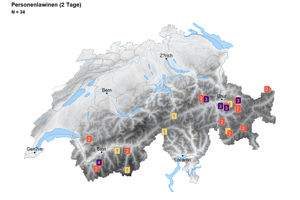 Am Mittwoch, 15.03. kam im freien Gelände in der Nähe des Skigebiets von Verbier (Val de Bagnes) eine Person in einer Lawine ums Leben. Die sehr grosse Lawine wurde durch Personen an einem Nordhang auf 2700 m ausgelöst. Sie lag am gleichen Hang unmittelbar neben einer Unfalllawine vom Montag, 13.03., welche ebenfalls ein Todesopfer gefordert hatte.