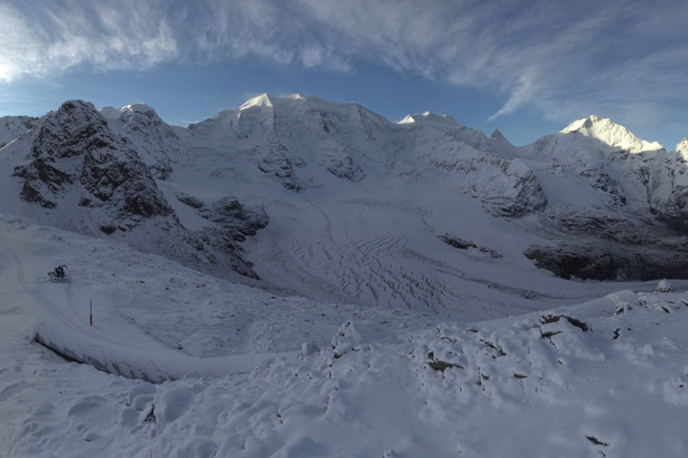 Die beiden Niederschlagsperioden waren kurz, aber sehr intensiv. Im Berninagebiet fielen in Summe innerhalb von 5 Tagen rund 1.5 m Neuschnee. Aufgrund der milden Temperaturen und der damit hohen Schneefallgrenze wurde diese Neuschneemenge aber erst weit oben im Hochgebirge erreicht. Schaute man zum Beispiel am Dienstagmorgen, 25. Oktober das Webcambild (Abb. 3) der Bergstation Diavolezza (2978 m) an, so war es dort zwar wunderschon winterlich, von 1.5 m Neuschnee war aber auf dieser Höhe nichts zu sehen.