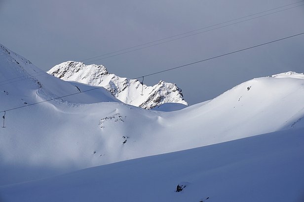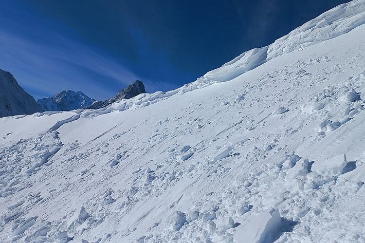 In der Höhe war die Schneedecke allgemein stark vom Wind geprägt und oft unregelmässig. Vor allem an Triebschneehängen oberhalb von rund 2600 m war die Bodenrauigkeit aber allmählich aufgefüllt und ausgeglättet (Abbildung 2), wobei am meisten Schnee in Rinnen und Mulden lag.