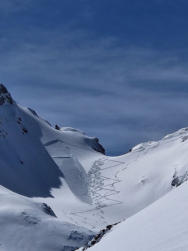 Einzelne grosse spontane Lawinen, welche nach dem Schneefall noch eindeutig erkennbar waren, wurden aber dennoch beobachtet (vgl. Abbildung 4).