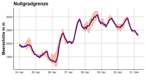 Nach dem Niederschlagsende war es am Samstag im Osten teils sonnig. Mit der Nullgradgrenze bei 3000 m war es sehr mild (Abbildung 3).