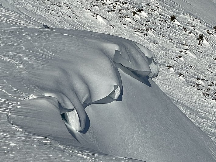 In den übrigen Gebieten kamen kaum Rückmeldungen von grossen oder gar sehr grossen spontanen Lawinenabgängen. Demzufolge dürfte die Gefahrenstufe 4 (gross) auch in der Nacht auf Samstag vielerorts nur knapp oder gar nicht erreicht worden sein. Allerdings ist die Lawinenbeobachtung während und auch nach mehrtägigen Stürmen immer sehr schwierig, da die Sicht eingeschränkt und Lawinenanrisse schnell wieder zugeschneit bzw. eingeblasen werden.
