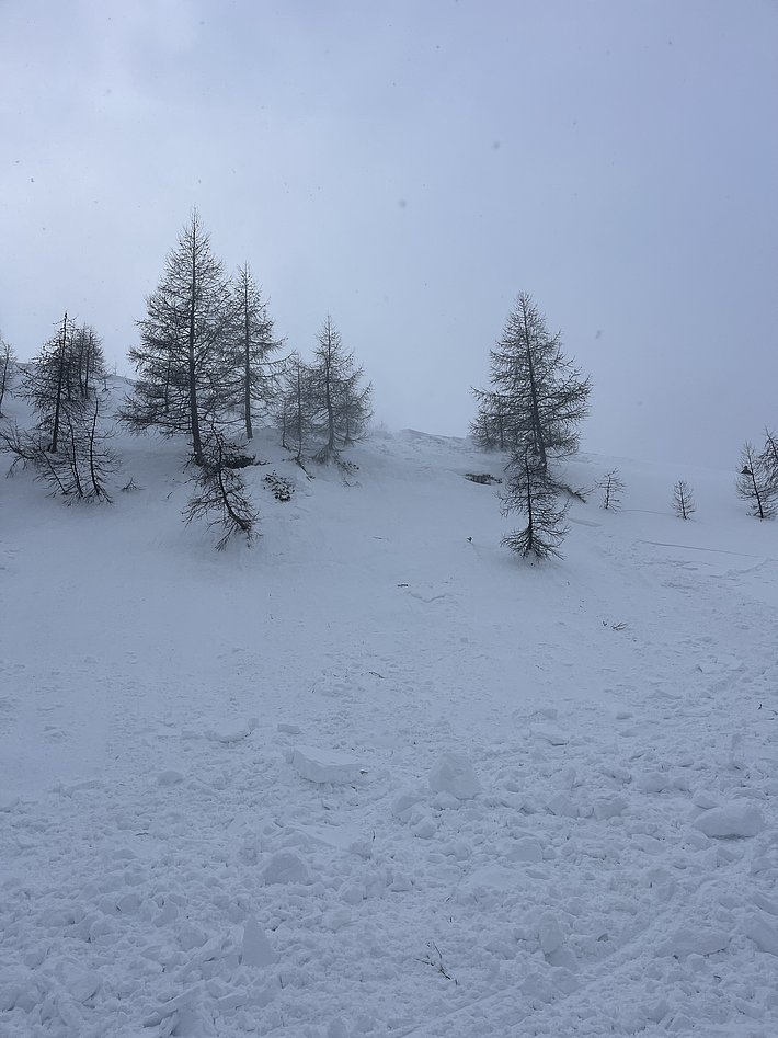 Am Samstag wurde im Skigebiet Verbier im grossen, sehr steilen Osthang des Mont Fort eine grosse Lawine von einem Variantenfahrer ausgelöst. Der Bruch ereignete sich relativ oberflächennah und breitete weit aus, was vermuten lässt, dass die Lawine am Übergang vom Neuschnee zum Altschnee abging. Es scheint also tatsächlich so, dass die ungünstige Oberfläche von letzter Woche an windgeschützten Hängen teilweise erhalten wurde und Lawinen nun stellenweise in dieser Schwachschicht ausgelöst werden können.