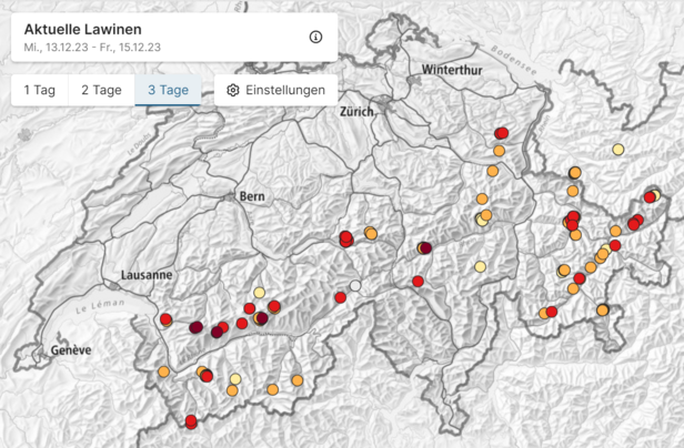 Seit dieser Woche können alle aktuell gemeldeten Lawinen bis drei Tage zurück auf whiterisk.ch betrachtet werden (vgl. Abbildung 9).