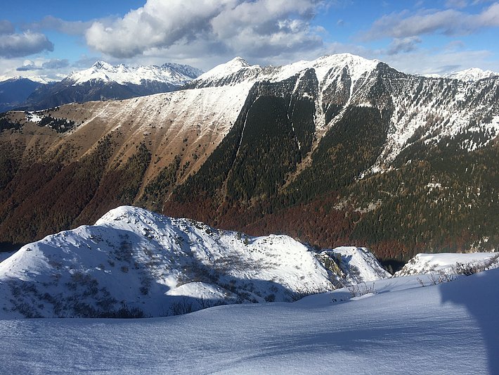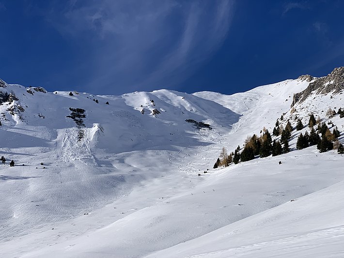 Auch in der zweiten Novemberwoche fiel anhaltend Niederschlag, der besonders im Westen ergiebig war. Während zunächst Schnee bis in mittlere Lagen fiel, stieg die Schneefallgrenze am Montag in hohe Lagen, am Dienstag im Westen teils bis gegen 2800 m. Mit der Erwärmung und dem teils intensiven Regen war die Lawinengefahr im Westen verbreitet «gross» (Stufe 4). Besonders am Montag und Dienstag gingen vermehrt trockene und nasse Lawinen nieder. Mit der Abkühlung nahm die Lawinenaktivität am Mittwoch deutlich ab.