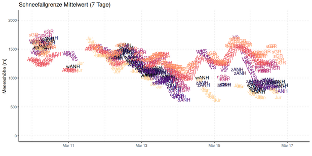 Innerhalb von acht Tagen fielen von Sonntagnachmittag, 9. März bis Montagmorgen, 17. März oberhalb von rund 1800 m (Abbildung 1):