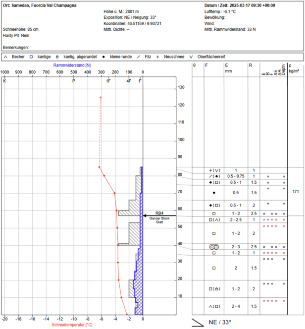 Schichten der Schneedecke anreissen konnten. Zudem waren zu Beginn der Südstaulage die Kontraste zwischen der Schneedecke an Süd- und Nordhängen gross. An den Südhängen machte sich der Frühling deutlich bemerkbar. Hier war die Schneedecke bis in die Höhe feucht. An Nordhängen herrschte dagegen noch Winter mit kantig aufgebautem, lockerem Schnee an der Oberfläche.