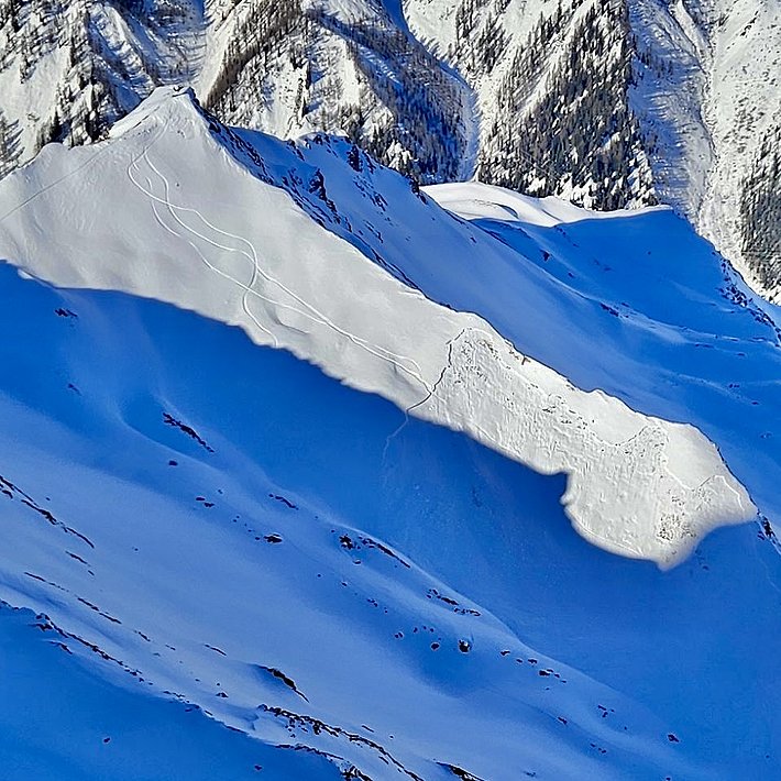 In Abbildung 3 wird auch deutlich, dass sich das Altschneeproblem dieses Mal nicht auf die inneralpinen Gebiete beschränkte. Es betraf, zumindest in der Höhe, die ganzen Schweizer Alpen. Am Alpennordhang war die Überlagerung der Schwachschichten oft mächtig und Lawinenauslösungen durch Personen dadurch nur stellenweise möglich. Wenn es aber zu einer Auslösung kam, wurden die Lawinen dementsprechend gross (Abb. 6).